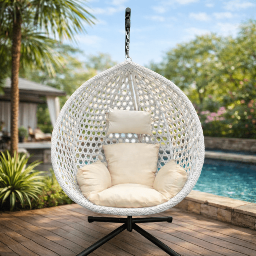 Never out of trend, hanging egg swing chairs have just been always sooooo popular. Upgraded texture of cushion cover material, looks more elegant.