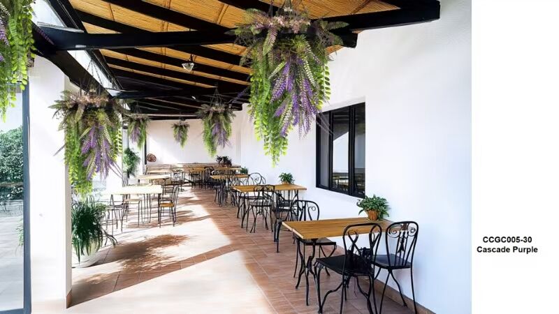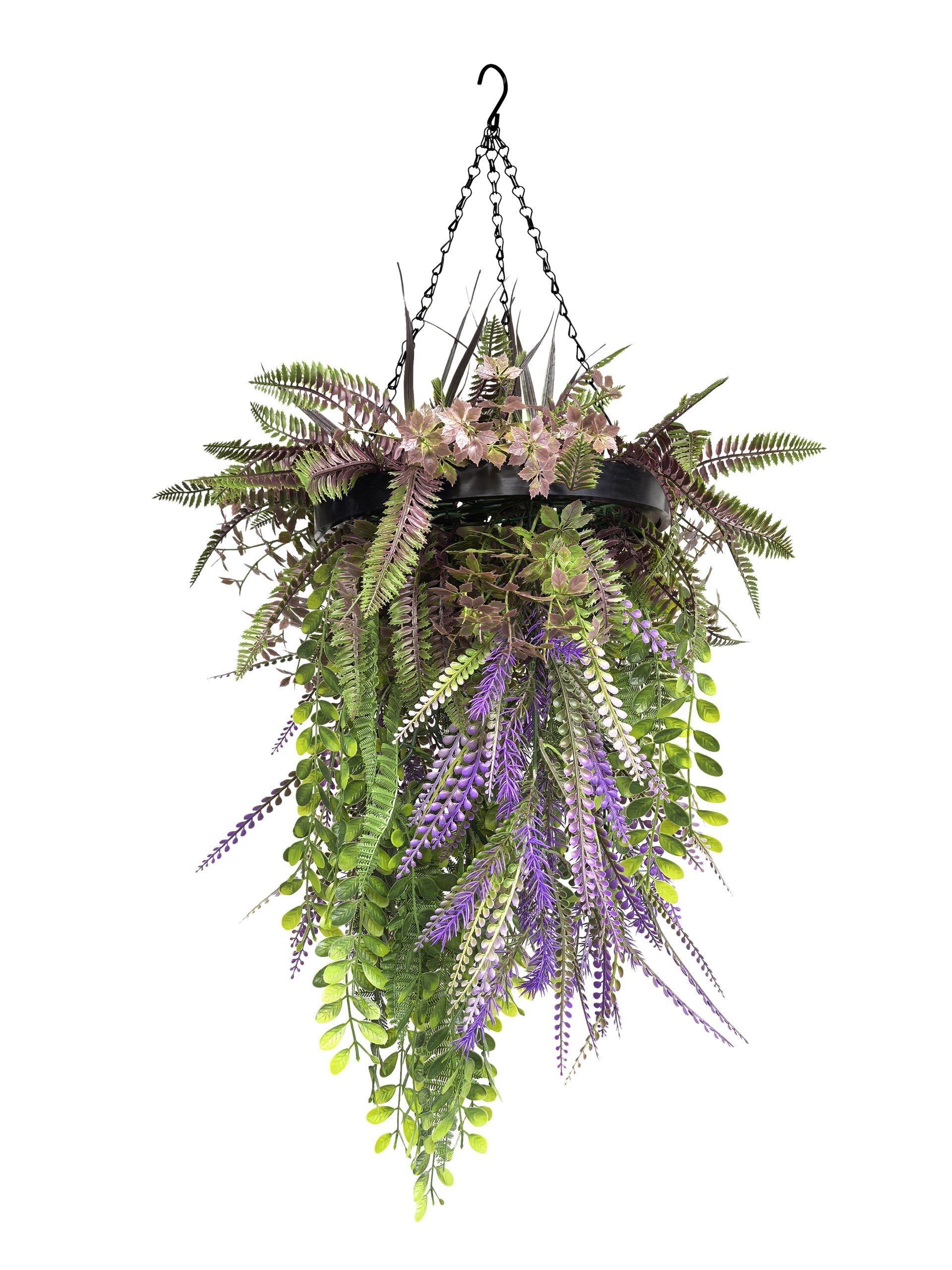 This Cascade Purple Artificial Hanging Plants is UV fade protected and weather resistant for long term outdoor use. Triple hangning chain is supplied with a hook. Fully assembled and ready to hang up straight out of the box. No maintenance required. Providing you fantastic look in your garden all year round.