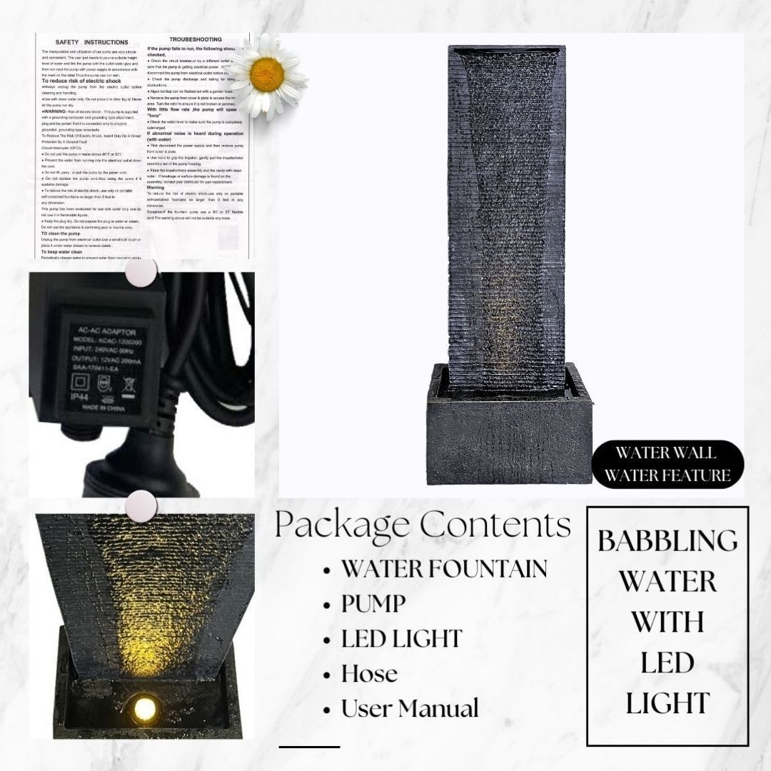 Some of our water features are suitable for both outdoor and indoor use. However, we do not recommend placing them on timber or carpeted floors indoors due to potential water splash that could damage these surfaces. To protect your floors, consider using a mat or tray underneath the feature. Before purchasing, please consult us regarding the amount of water splash to ensure suitability. Note: Returns or exchanges are only accepted for products in their original, resalable packaging.